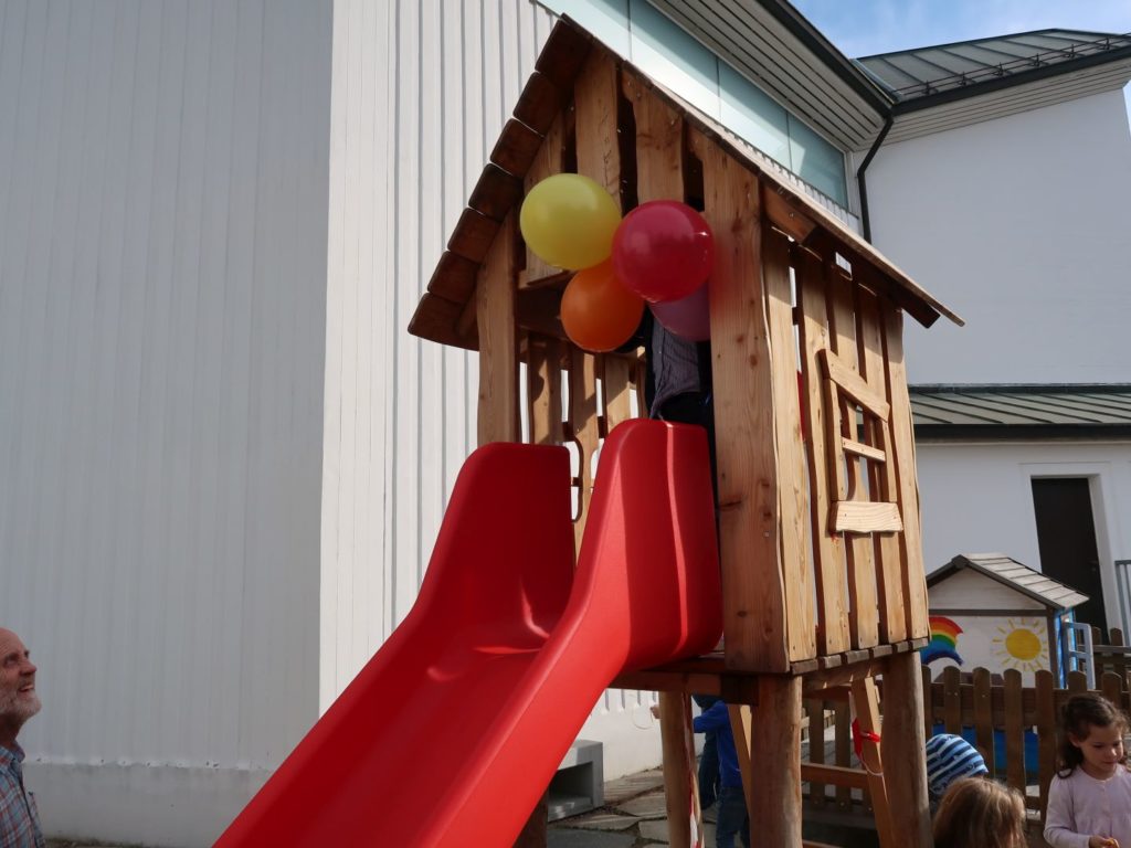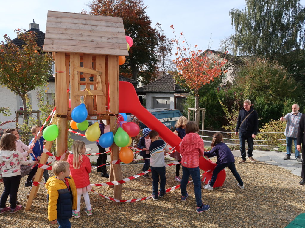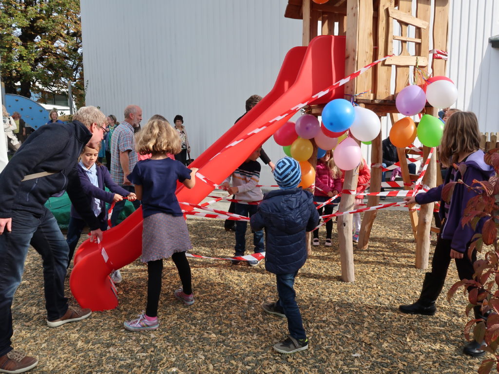 Nach dem Familiengottesdienst vom 27. Oktober 2019 wurde die neue Rutschbahn bei schönstem Herbstwetter eingeweiht.